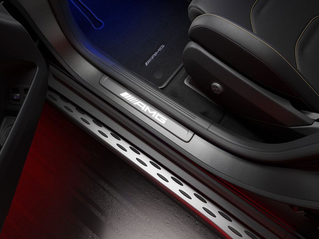 Illuminated AMG door sill panels with iconic AMG lettering set the tone for every journey, combining performance flair with a premium welcome.