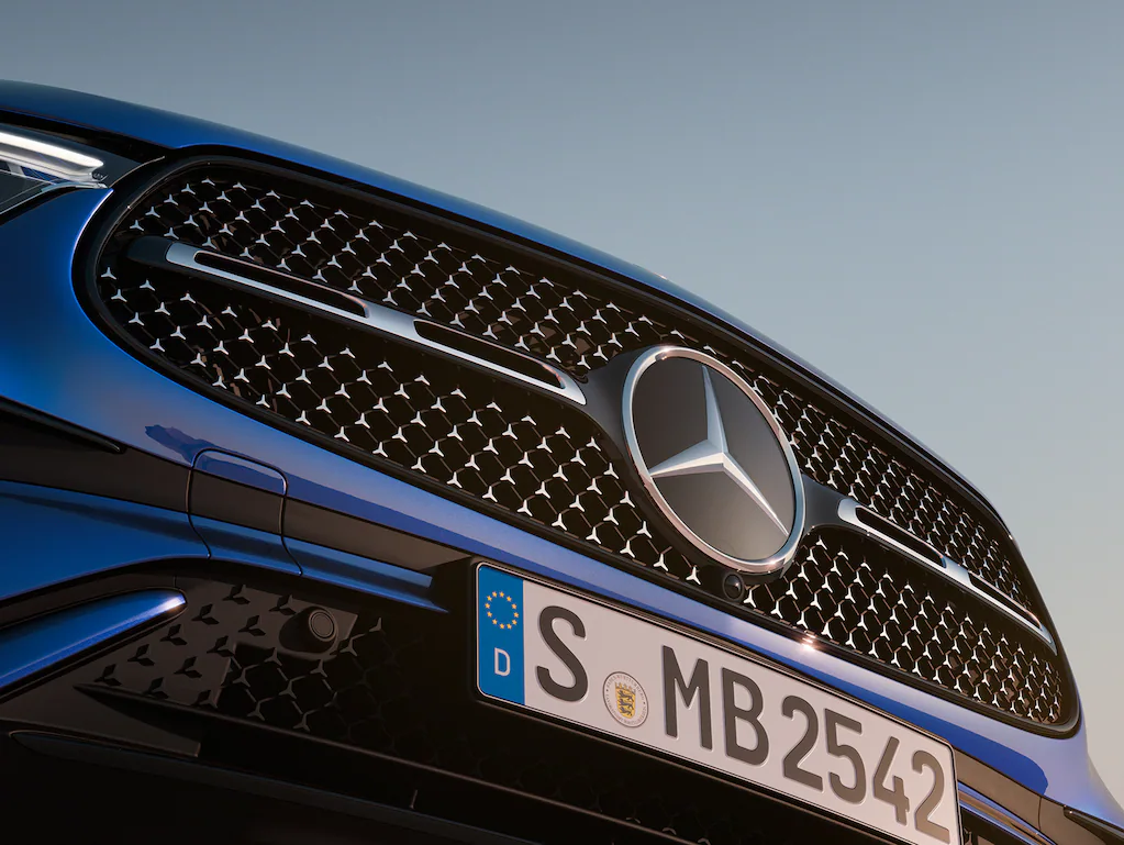 The new GLC’s front design highlights its sporty character with a chrome‑surrounded radiator grille, vertical louvres, and wide‑set headlights. At the centre, the iconic Mercedes star completes the striking SUV presence.