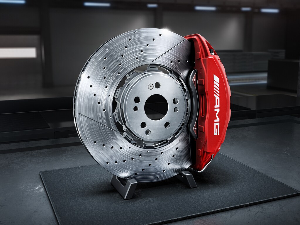 The AMG high‑performance composite brake system ensures confident deceleration in every situation. With generously sized, internally ventilated discs, it delivers precise control and reliable stopping power; the perfect partner when speed needs to be managed with accuracy.