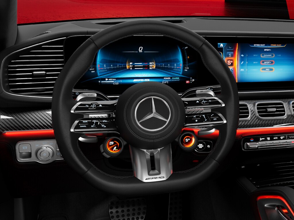 Inside the Mercedes-AMG GLE, signature AMG design elements create a perfect blend of performance and comfort. Sport seats and the AMG Performance steering wheel deliver an engaging driving experience, while the advanced control and display concept ensures personalised entertainment. Premium features such as the Burmester® surround sound system and panoramic sunroof underscore the vehicle’s commitment to first-class luxury.